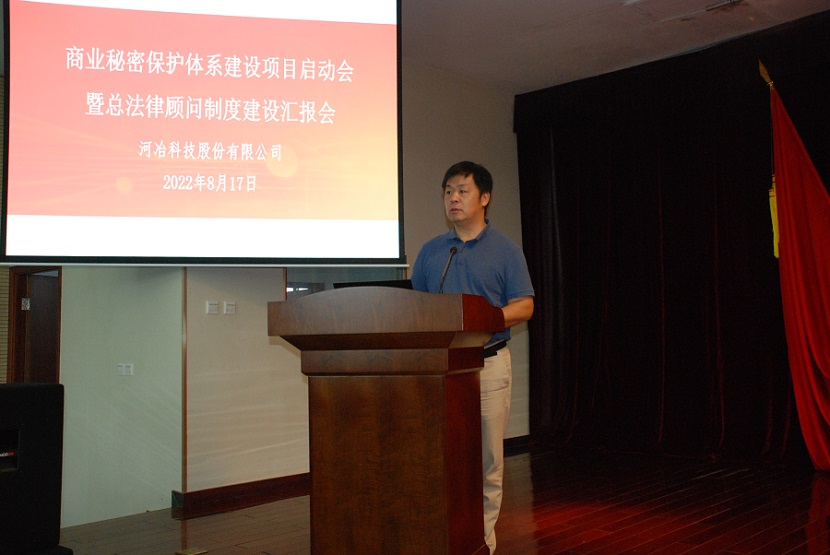 8月17日,河冶科技召開商業(yè)秘密保護體系建設(shè)項目啟動會暨總法律顧問制度建設(shè)匯報會在河冶多功能廳召開。安泰科技總法律顧問、商密總代表王勁東,河冶科技總經(jīng)理米永旺,河冶高管團隊,安泰科技商密辦公室成員,河冶各部門商密代表及商密管理員參會。會議由河冶科技總法律顧問劉鵬杰主持。