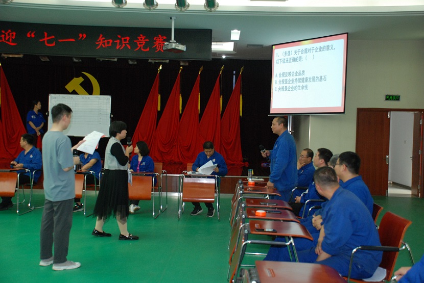 為迎接黨的102周歲華誕,深入學習貫徹習近平總書記重要講話精神,不斷創新學習形式、深化學習效果,2023年6月30日,公司黨群紀檢工作部組織了“2023年迎七一黨史知識競賽”活動。公司黨委副書記梁敬斌、總法律顧問劉鵬杰、工會主席趙金伶出席比賽現場。公司九支隊伍參加比賽,每支隊伍由三名隊員組成,分別為各支部支委、正式黨員和入黨積極分子。