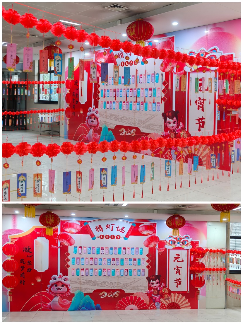 活動當天,生活區食堂就餐大廳被裝點得煥然一新。頂棚高懸著大紅燈籠,大廳的柱子掛滿了彩色燈謎紙條,洋溢著濃厚的節日氛圍。員工們一踏入食堂,就被這喜慶的場景所感染,迫不及待地投入到活動中。