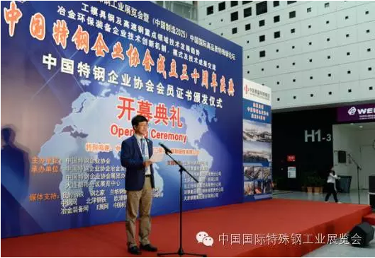中國國際特殊鋼工業(yè)展覽會開幕式由九屆六次執(zhí)行會長寶鋼特鋼總經(jīng)理龐遠林主持,中國特鋼企業(yè)協(xié)會會長中信泰富特鋼集團董事長俞亞鵬致開幕詞,中國鋼鐵工業(yè)協(xié)會副會長王利群和中國鋼研科技集團副總經(jīng)理田志凌致賀詞。參加開幕式剪彩的領(lǐng)導(dǎo)及嘉賓有:寶鋼特鋼有限公司總經(jīng)理龐遠林、中信泰富特鋼集團董事長俞亞鵬、西寧特殊鋼集團有限責任公司董事長、黨委書記楊忠、中國鋼鐵工業(yè)協(xié)會副會長王利群、中國鋼鐵工業(yè)協(xié)會副會長、冶金規(guī)劃研究院院長李新創(chuàng)、中國鋼研科技集團有限公司副總經(jīng)理田志凌、中信泰富特鋼集團總裁錢剛、東北特殊鋼集團有限責任公司總工程師董學(xué)東、太原鋼鐵(集團)有限公司副總柴志勇、舞陽鋼鐵有限責任公司董事長鄧建軍、天津鋼管集團有限公司副總工程師楊在安、中國特鋼企業(yè)協(xié)會不銹鋼分會常務(wù)副會長劉復(fù)興、河鋼集團石鋼公司總工程師齊建軍等。開幕式后全體參觀了展覽會。